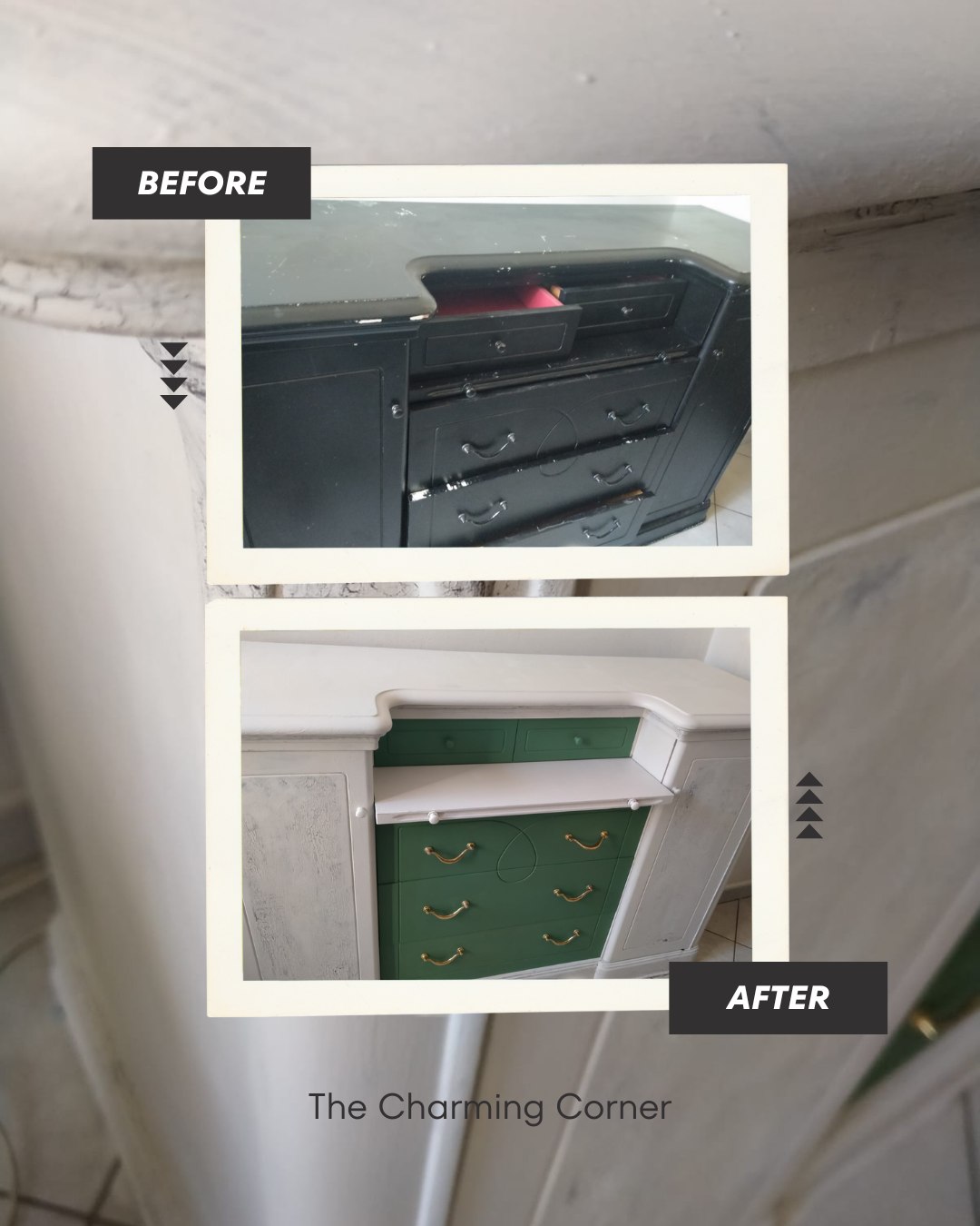 With The Charming Corner, I combine creativity, love for detail and the timeless beauty of Shabby Chic to bring new life to furniture and rooms.